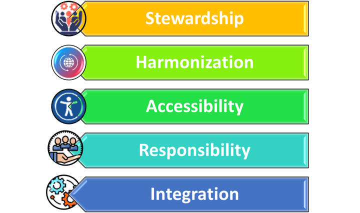 Illustration: The SHaRD Framework’s five pillars – Stewardship, Harmonization, Accessibility, Responsibility, and Developmental Integration – form the foundation for a cohesive humanitarian data system in Somalia (horizontal flow).
